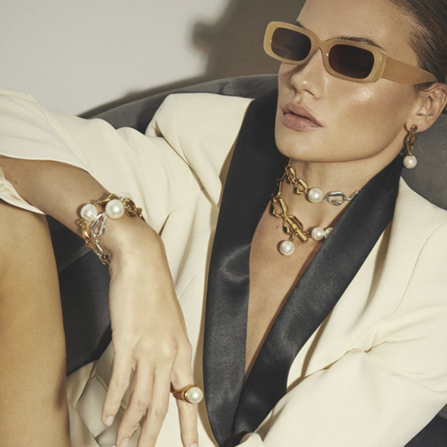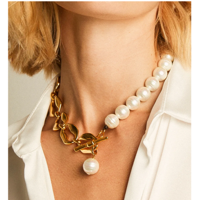 MATERIAL: 24k Gold or Sterling Silver plated metal alloy, baroque pearls and natural leather.