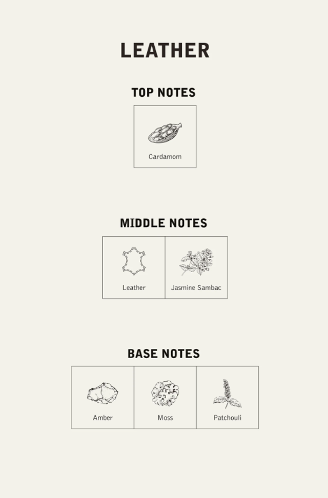 Intense and seductive, with the strength of leather and the depth of patchouli.