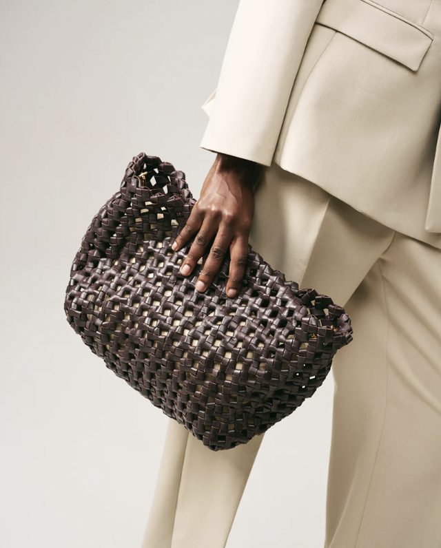 Maxi pochette intrecciata a mano in pelle.